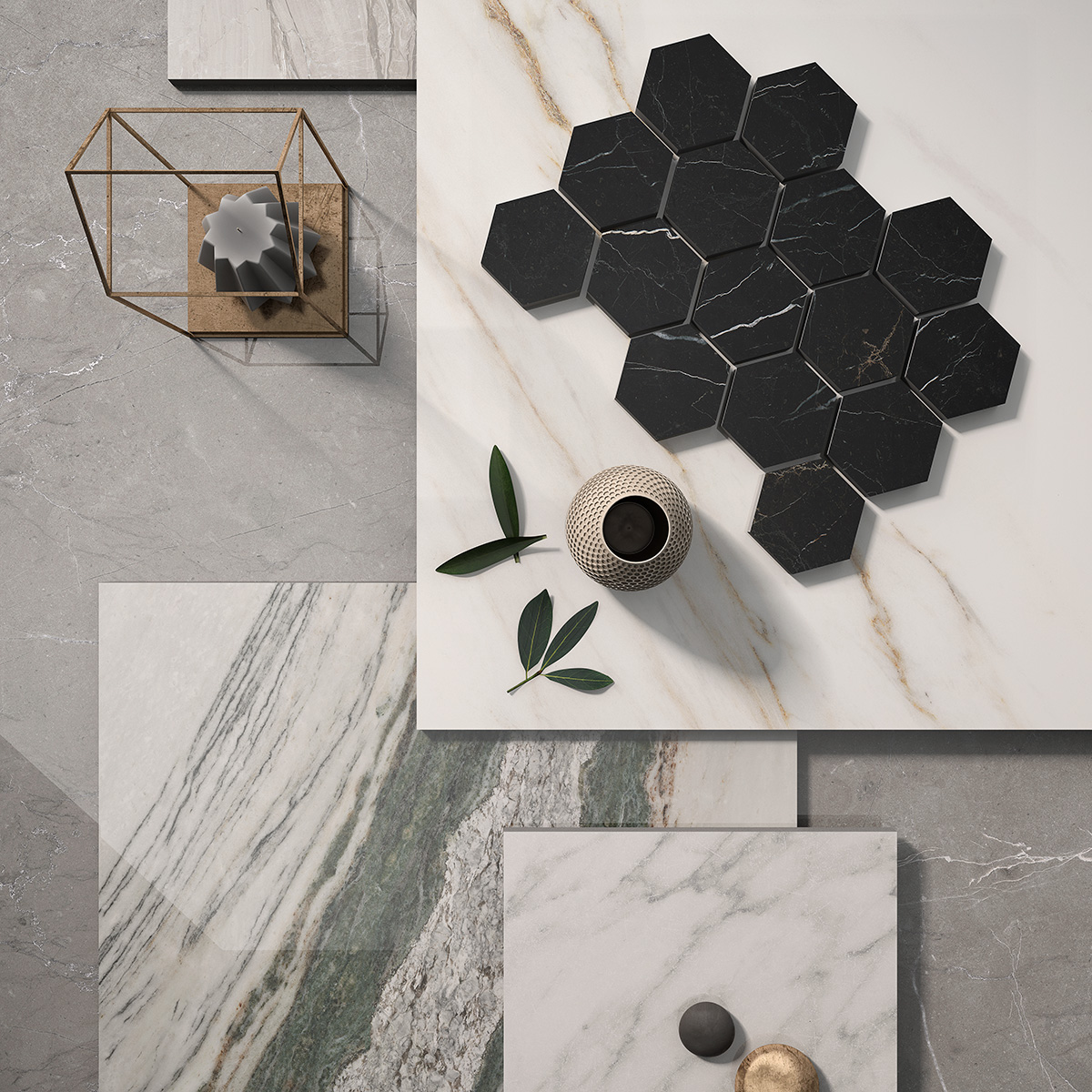 Inspired by the current “Mix and Match” interior design trend, we propose combinations of ceramic marbles with different textures and colours from other collections in our product range to demonstrate the ease with which this material coexists with finishes such as: wood, cement and metal.